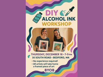 Create your own unique alcohol ink masterpiece and watch colors come to life! Participants may BYOB.