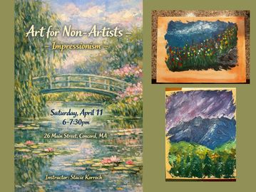 During this class, we will explore the Impressionist style of art and create our own masterpieces - no experience required! Snacks provided; participants may BYOB.