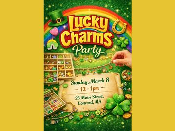 Celebrate St. Patrick’s Day early at our Lucky Charms charm bar party! Mix and match charms to create a necklace, bracelet, bag charm, or keychain. For kids and adults.
