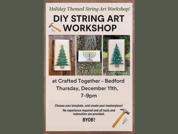 Make a beautiful string art Christmas tree or Hanukkah menorah this holiday season! Participants may BYOB.